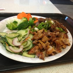 1 . Using a sharp knife ,score each chicken breasts diagonally across 3 times and rub all over with teriyaki sauce .Set aside to marinate for at least 10 minutes .